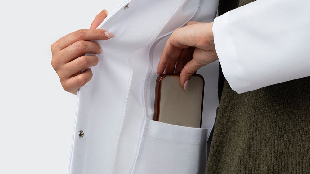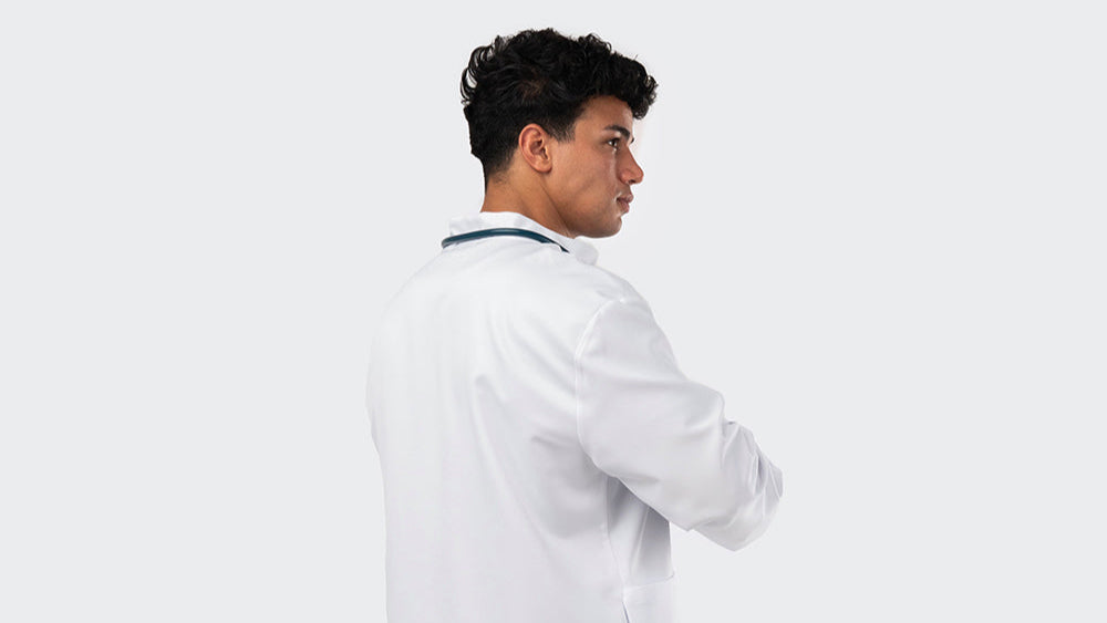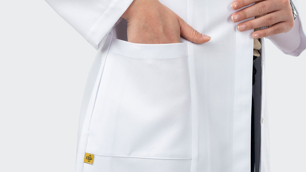 Nous avons remplacé les traitements chimiques par un tissu naturellement performant. Plus stable, plus propre, plus durable. Le tissu reste éclatant, garde sa blancheur, se froisse moins et offre un tombé net, pour un look soigné du matin jusqu’au dernier patient.