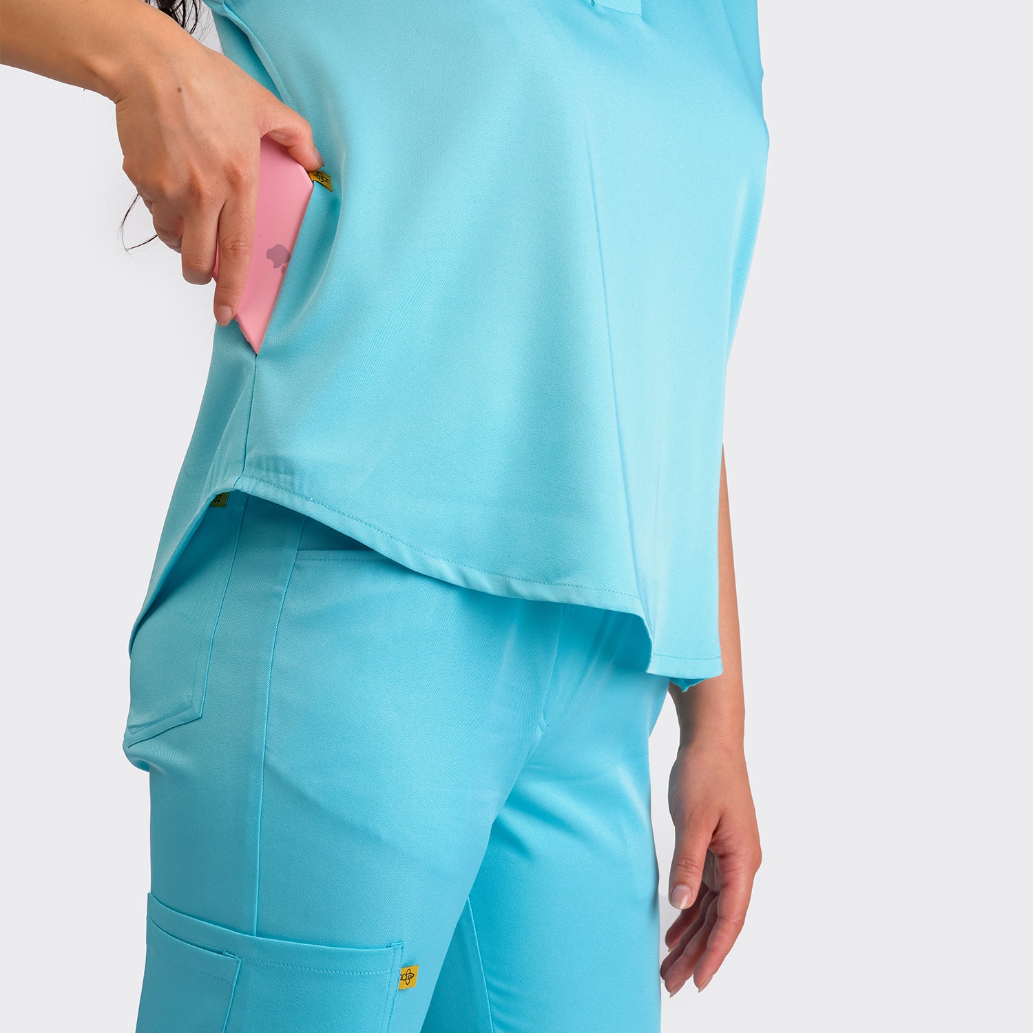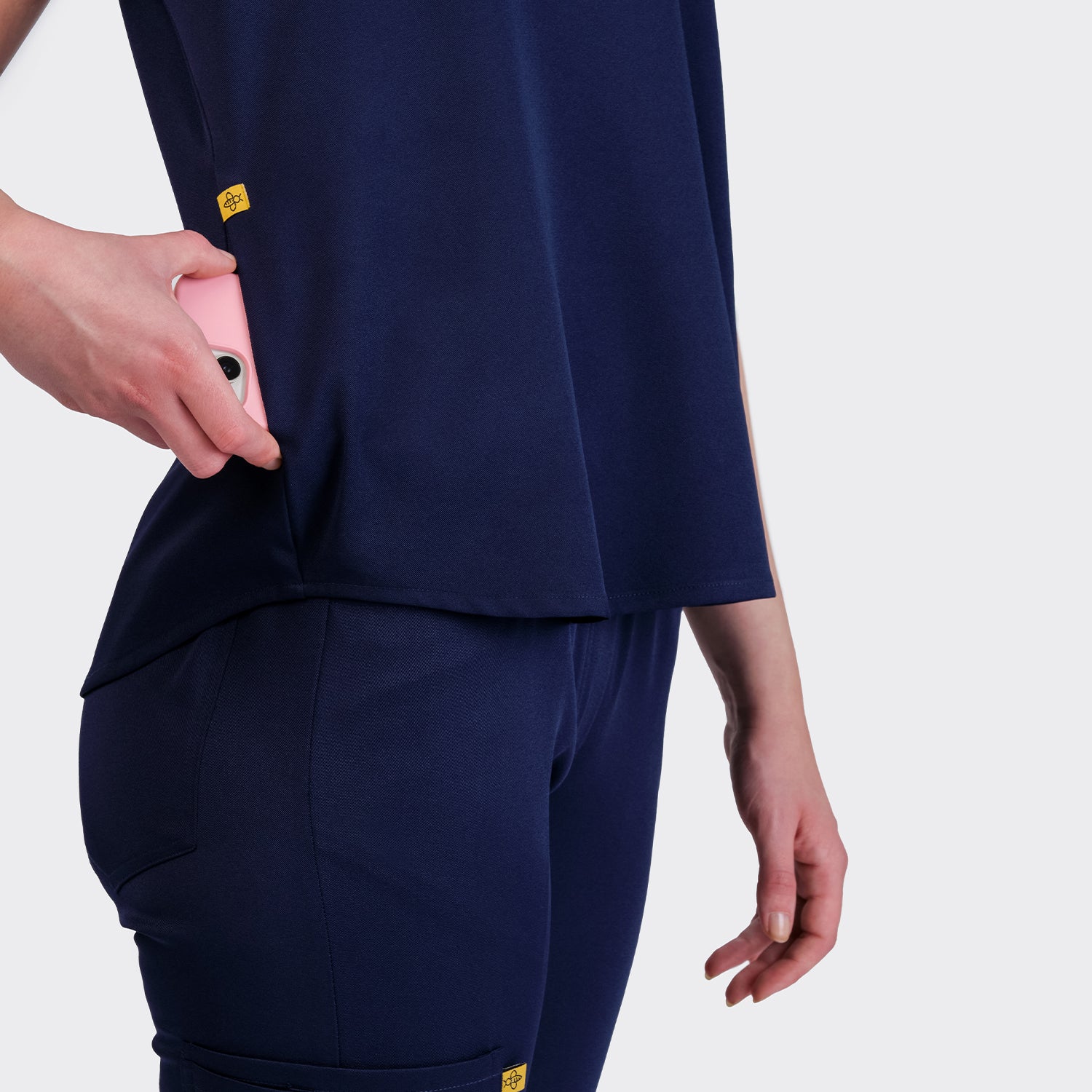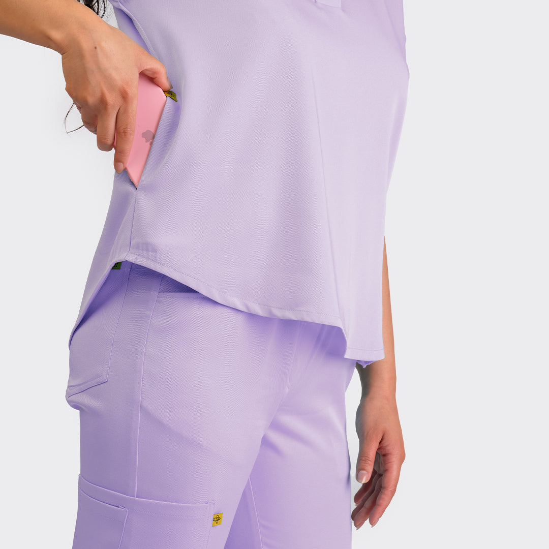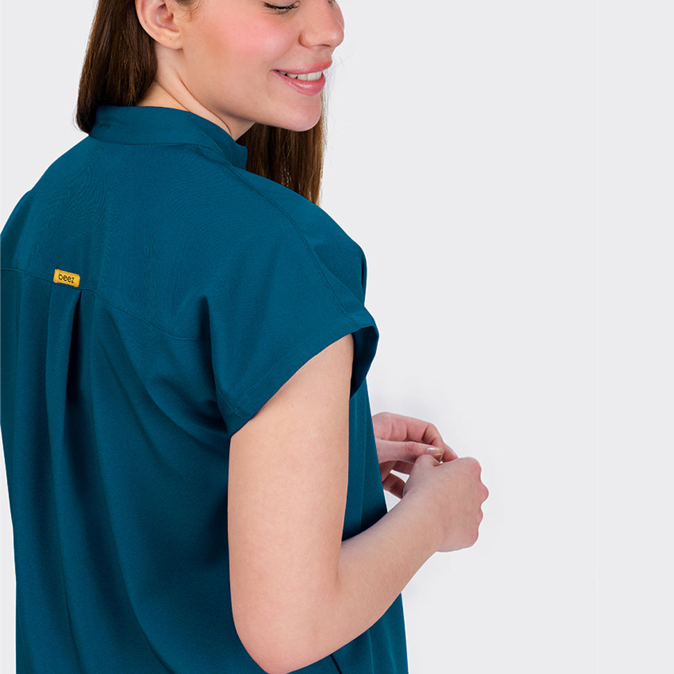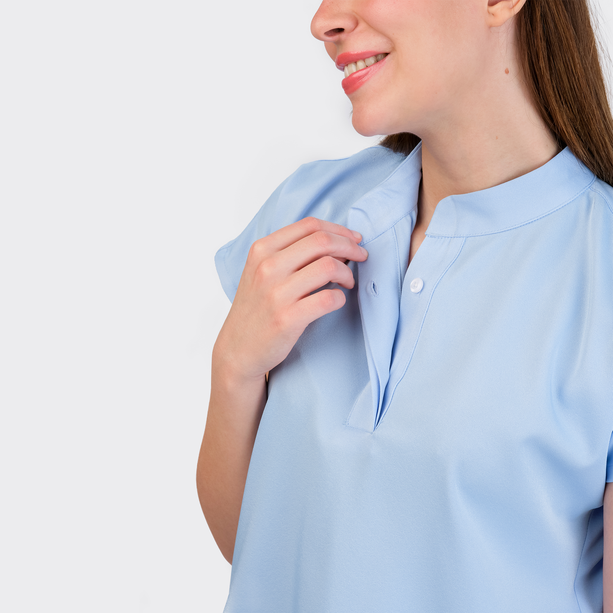 - Ourlet en pan de chemise, plus long pour plus de couverture
