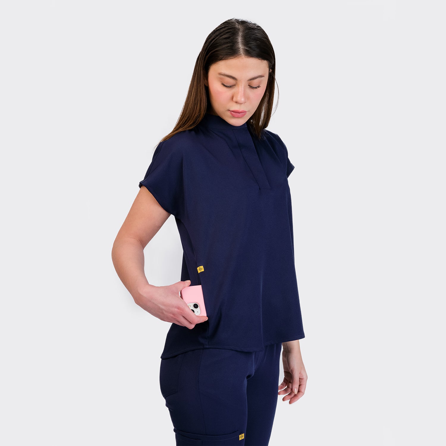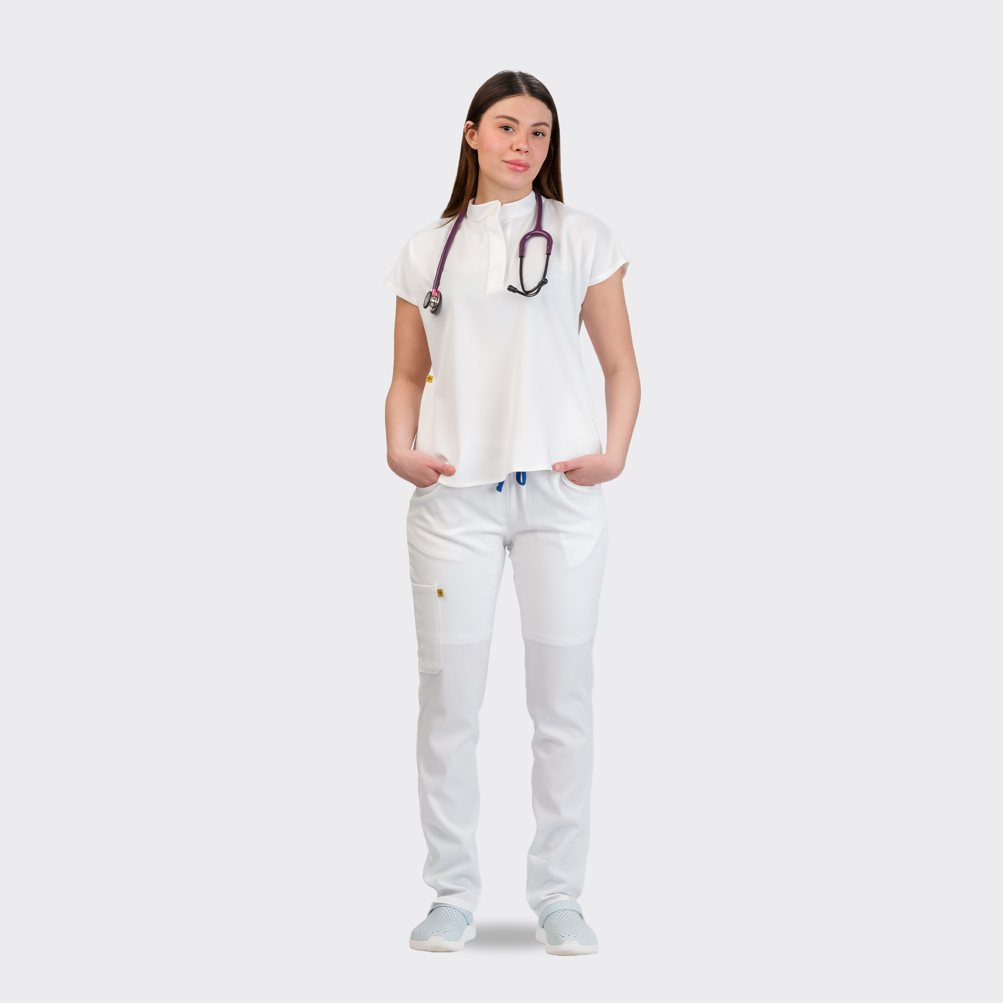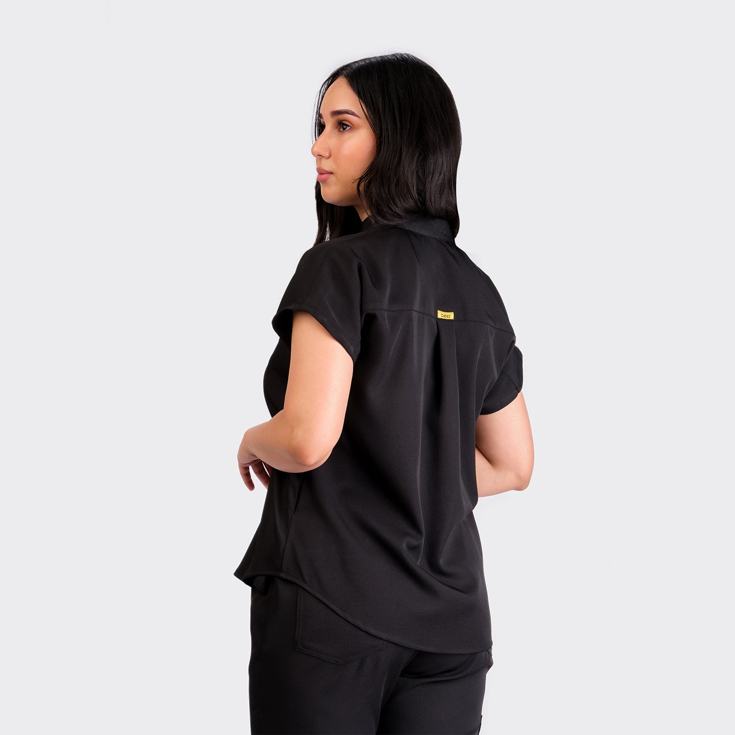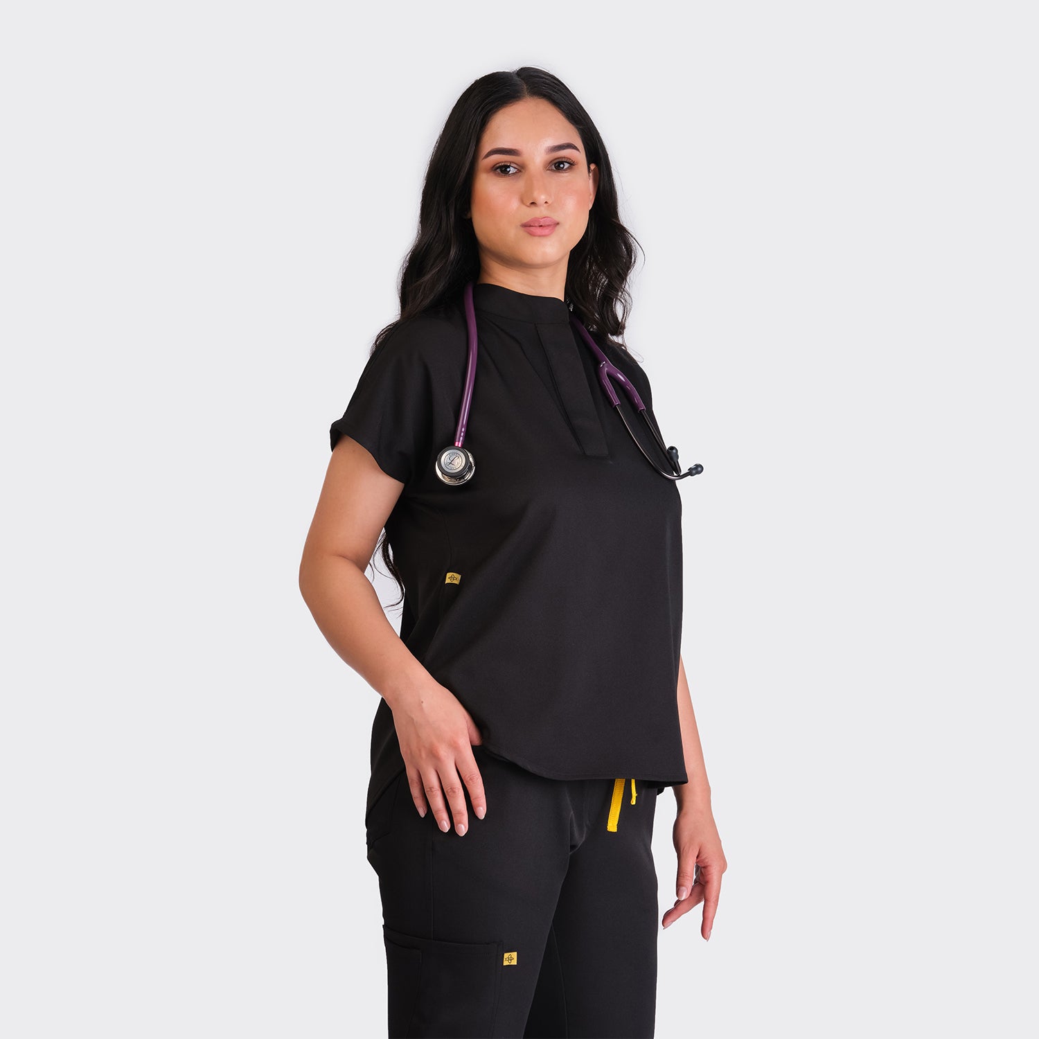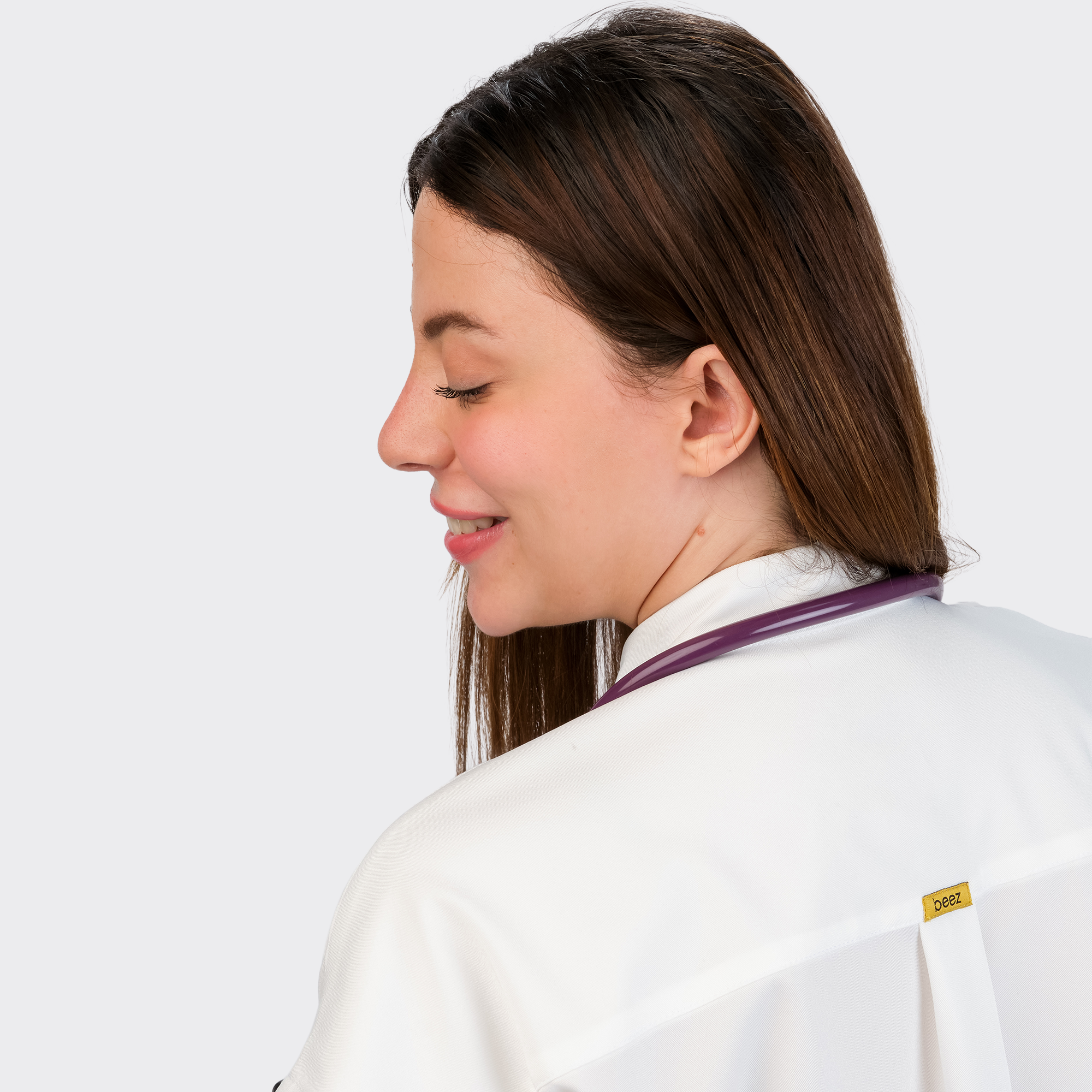 - Ourlet en pan de chemise, plus long pour plus de couverture